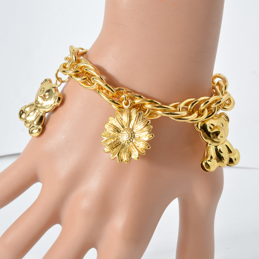 Zeadear jewelry 14k gold plated flower and bear charm bracelet