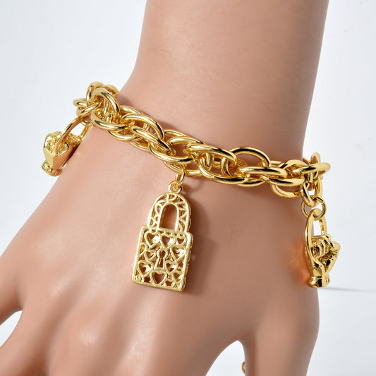 Zeadear jewelry 14k gold plated Fists and locks charm bracelet