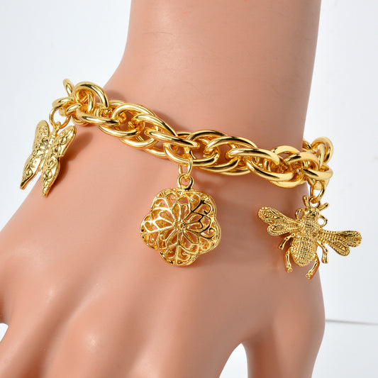 Zeadear jewelry 14k gold plated Butterfly Flower Bee Life Tree charm bracelet