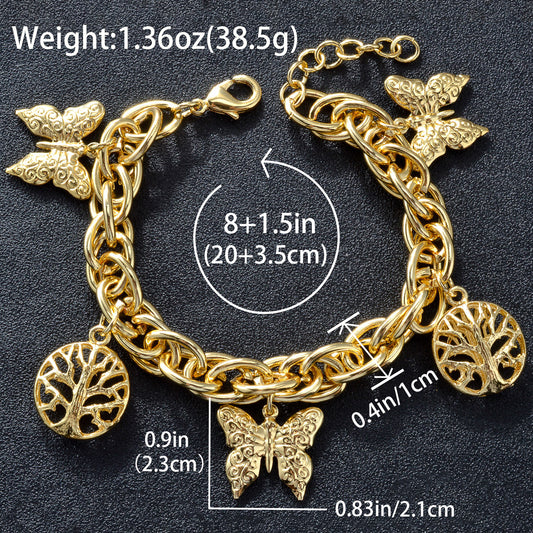 Zeadear jewelry 14k gold plated Butterfly and Life Tree charm bracelet