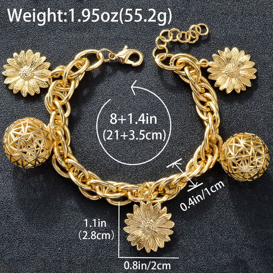 Zeadear jewelry 14k gold plated Balls and flower charm bracelet