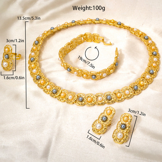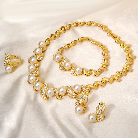 Custom Wholesale Jewellery Fashion Dubai Gold Plated Luxury Bridal Wedding Pearl Zircon Jewelry Set Women