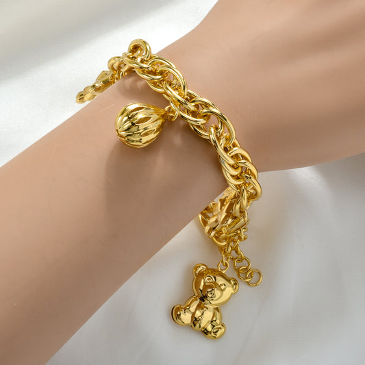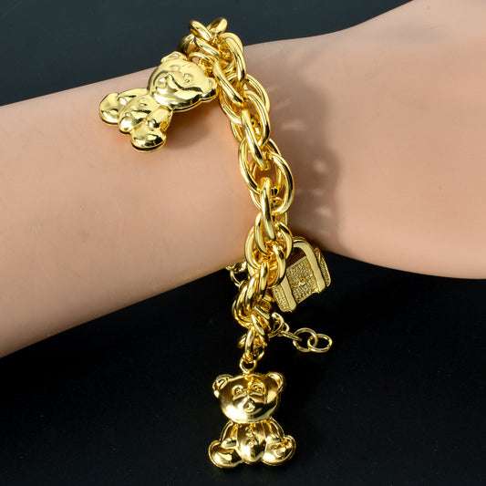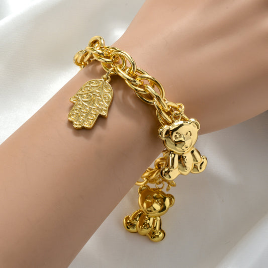 NEW Arrived bear and khamsah 14k Gold Plated Link Chain Charm Bracelet
