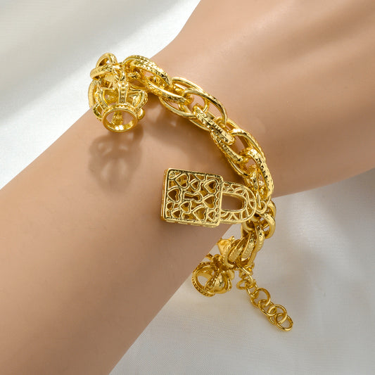 Zeadear jewelry 14k gold plated Lock and Crown charm bracelet
