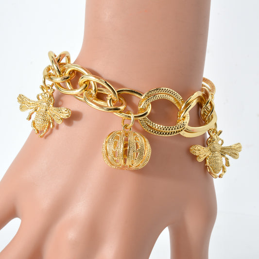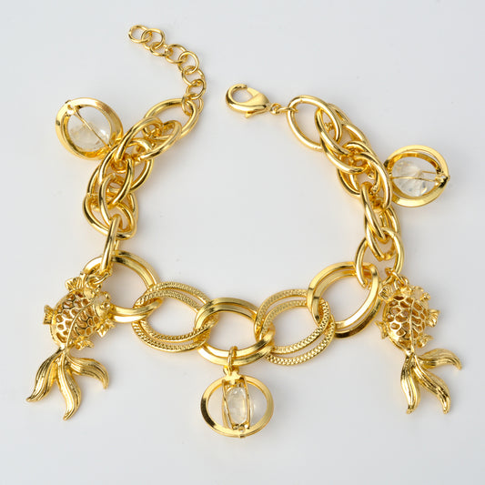Goldfish and ball zircon 14k Gold Plated Link Chain Charm Bracelet