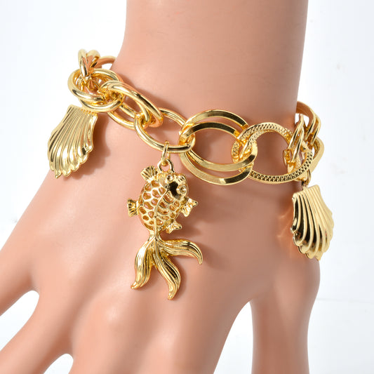 wholesale Goldfish and shells 14k Gold Plated Link Chain Charm Bracelet