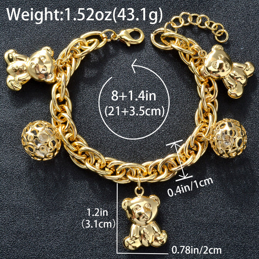 Zeadear jewelry 14k gold plated Ball and bear charm bracelet