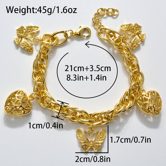 Zeadear jewelry 14k gold plated Hollow heart and butterfly charm bracelet