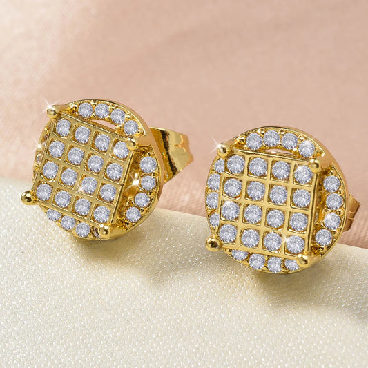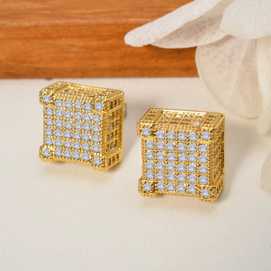Wholesale Multi Styles Rhinestone Cube Stud Hypoallergenic 18K Gold Plated zircon Earrings for Women