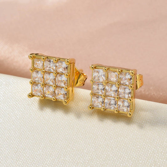 Wholesale Multi Styles Cube Stud Hypoallergenic 18K Gold Plated Princess cut zircon Earrings for Women