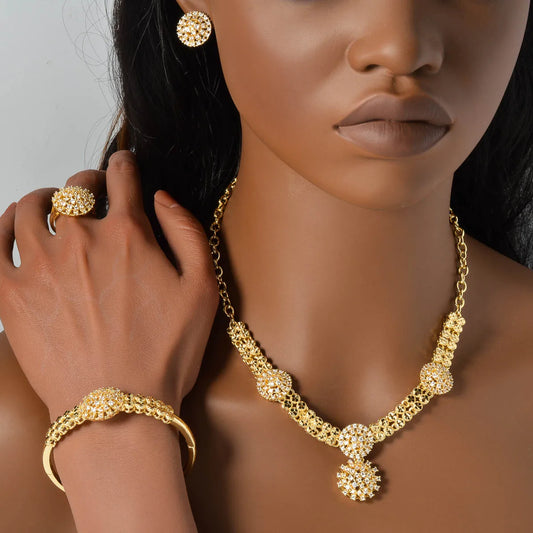 New Arrival 14k gold plated zircon Necklace Earrings Ring Bracelet Bridal Jewelry Sets for Women