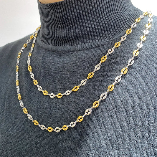 Fashion Copper Italy 750 18k gold plated Egg Shaped Pig Nose Chain Necklace Coffee Bean Link Chain Necklace For Women