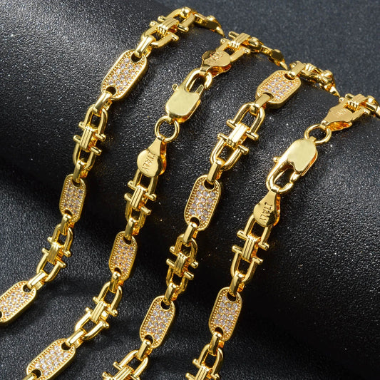 Fashion luxury Italy 750 18k gold plated high quality Copper Byzantine zircon Link Chain Necklace For Women