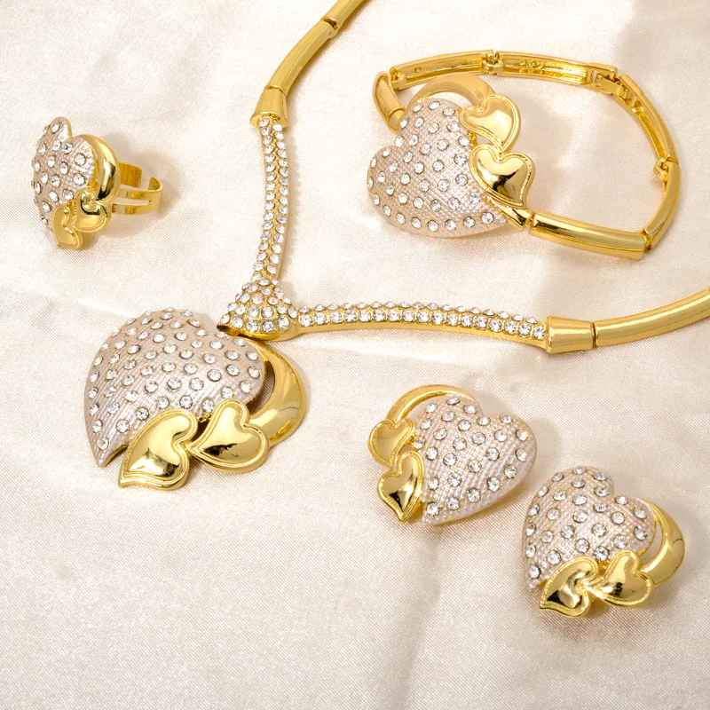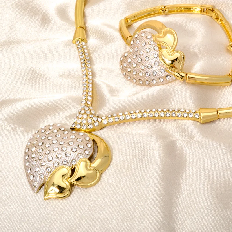 Bridal Jewelry Set Fashion 2021 Jewellery Dubai Women Bracelets Heavy Sets Gold Brass Opp Bag CLASSIC Flower Zircon Copper GDTC